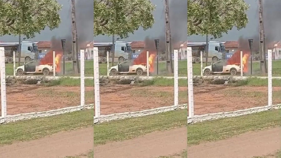 Carro é destruído por incêndio às margens da BR-163 após suspeita de vazamento de gás